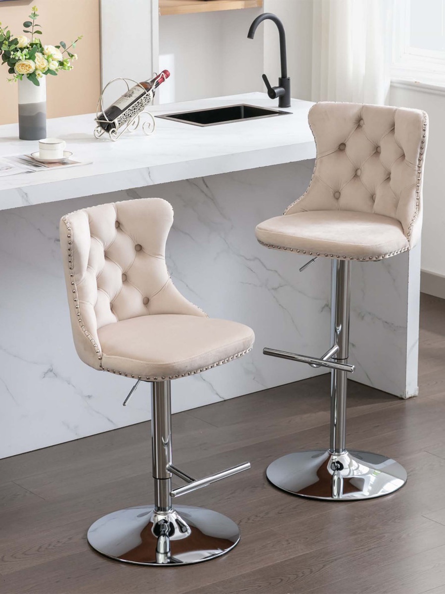 (Set Of 2)Swivel Upholstered Adjustable Height Counter Stool With Metal Frame