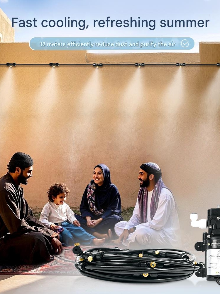 12-Meter Spray Kit, Keeps You Cool All Summer, 16 Spray Nozzles, Nozzle Diameter 0.5Mm, With 24V Water Pump.