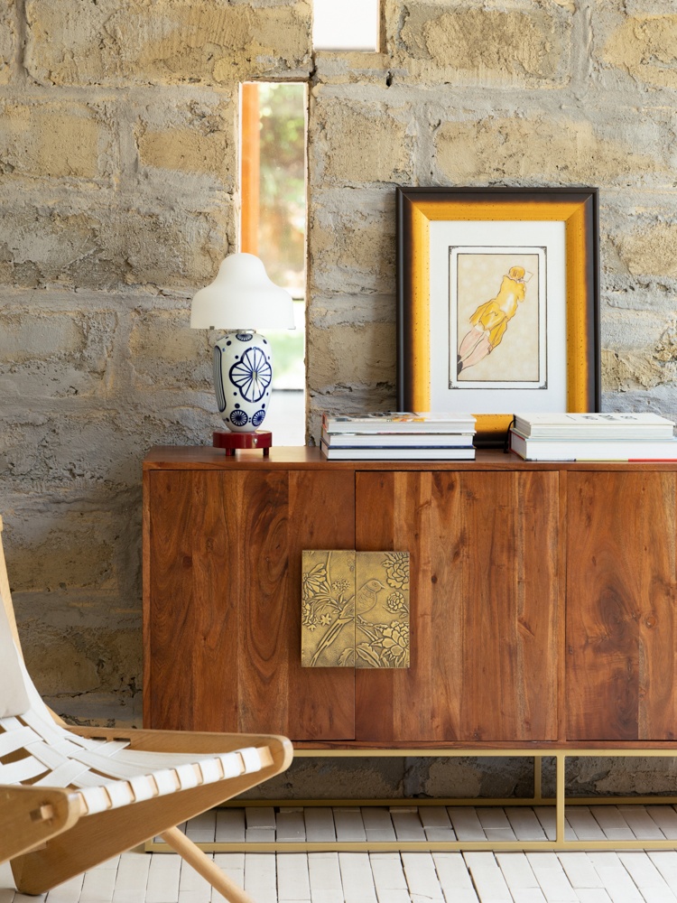 162Cm Isadora Embossed Brass Cabinet Relief Buffet Tables & Sideboards