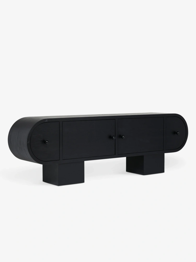• The Laughlin sideboard brings a fresh touch of sophistication to your dining room or lounge. The pill-shaped silhouette offers retro inspiration with soft close drawers for a strikingly modern design that can serve as a sideboard or media console. This piece is from our exclusive Sarah Sherman Samuel collaboration and features all the trademarks of her warm, edited style.