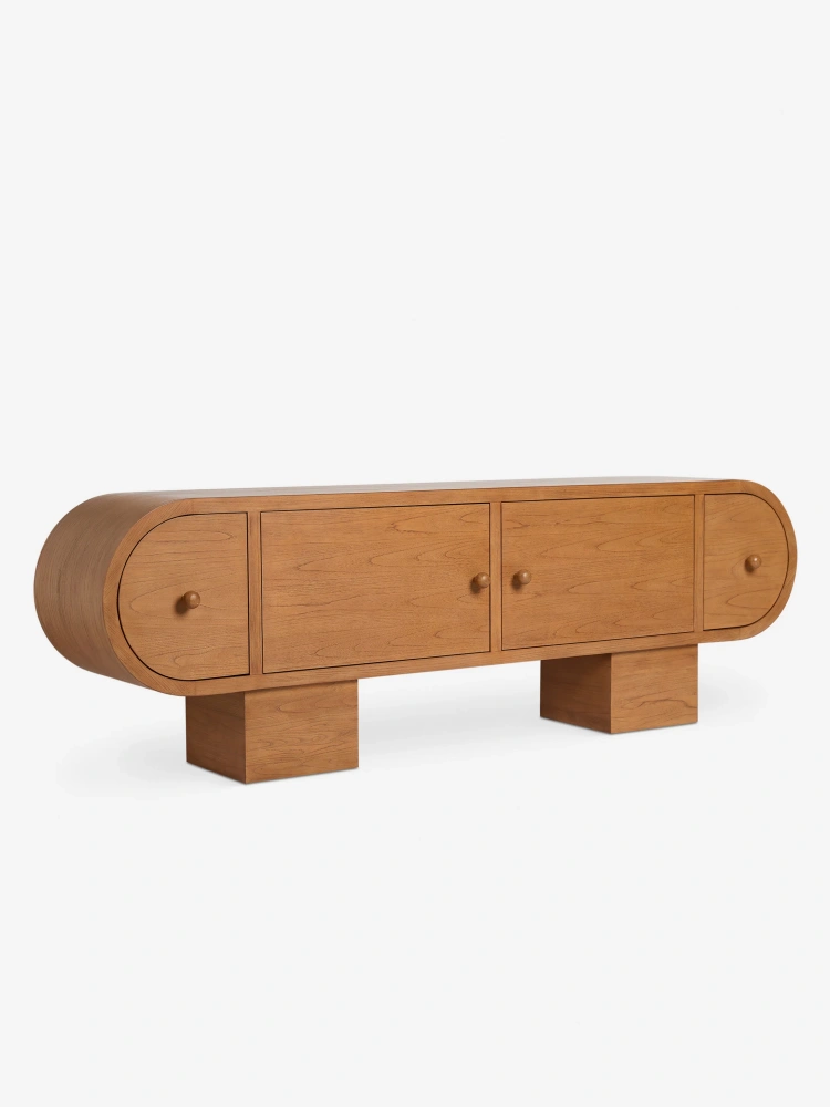• The Laughlin sideboard brings a fresh touch of sophistication to your dining room or lounge. The pill-shaped silhouette offers retro inspiration with soft close drawers for a strikingly modern design that can serve as a sideboard or media console. This piece is from our exclusive Sarah Sherman Samuel collaboration and features all the trademarks of her warm, edited style.