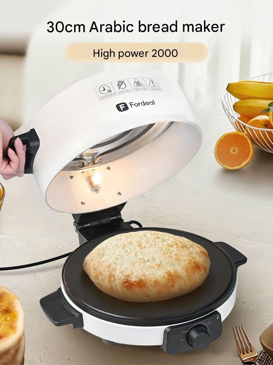 30Cm Arabic Bread Maker, 2000W Power, Simultaneous Top And Bottom Heating, Visible Cooking, Open Lid Grilling, Non-Stick Pan.