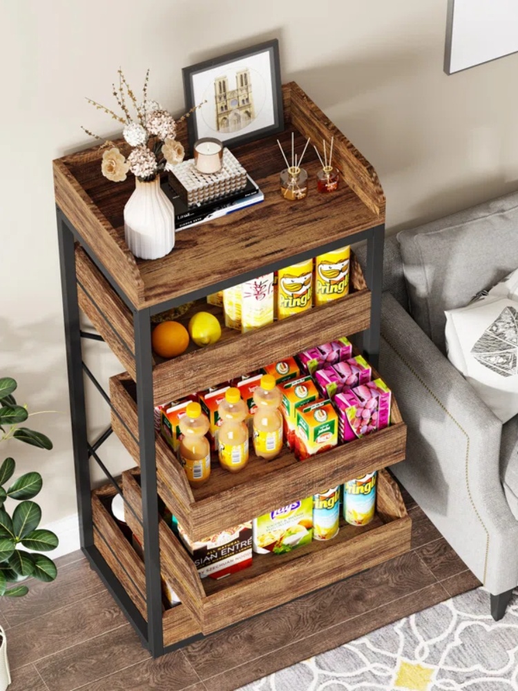 • MULTIPURPOSE STORAGE RACK: Our vegetable stand can be used as a fruit organizer, retail display, snack storage rack, books utility rack, kids toys bin, food organizer. It exudes elegance and is perfect for beautifying your kitchen, garage, office, living room, or any other space with its captivating charm.