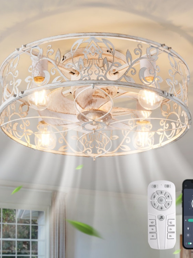 • Elegant design: Featuring with intricate hollow patterns, this flush mount ceiling fan blends classical beauty and modern craftsmanship, creating a perfect fusion of vintage charm and contemporary style.