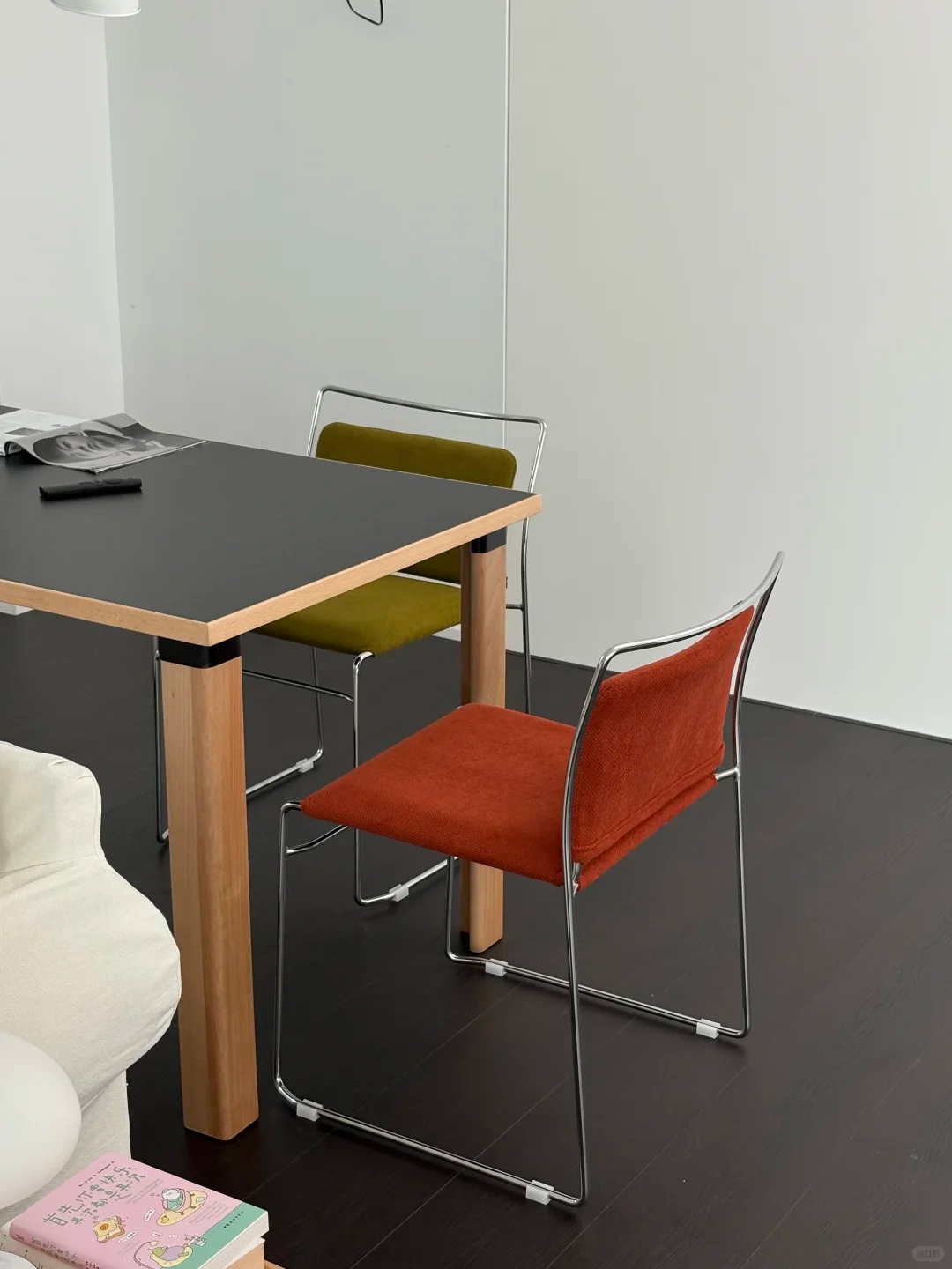 One of the first chair models to replace the folding process of the tubular frame with a slender bent metal rod, induction welded and chrome plated. The innovation lies in its unrivalled metal workmanship, tighter folds and faster production process. Today, the chair has been completely re-industrialised and improved with a reinforced frame with thermoformed seat and backrest with elastic bands, a compact upholstered cover and a zipper to completely remove the cover.