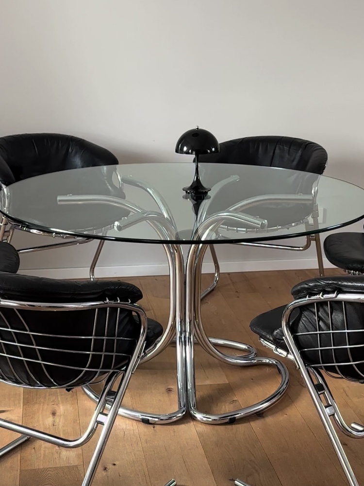 70Cm Retro Nordic Tempered Glass&Stainless Steel Round Dining Table
