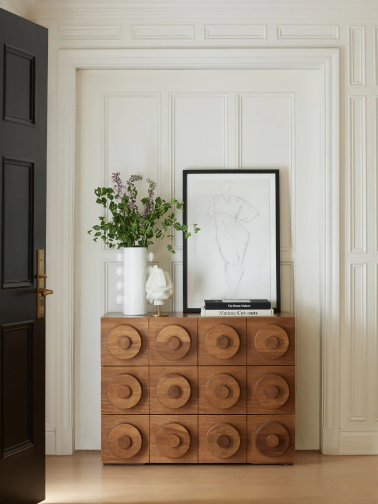 • Cylindrical wood drawer pulls clad this dresser with a playful facade for an effortlessly modern feel. We love the compact length and spacious drawers for an eye-catching dresser with small-space potential.