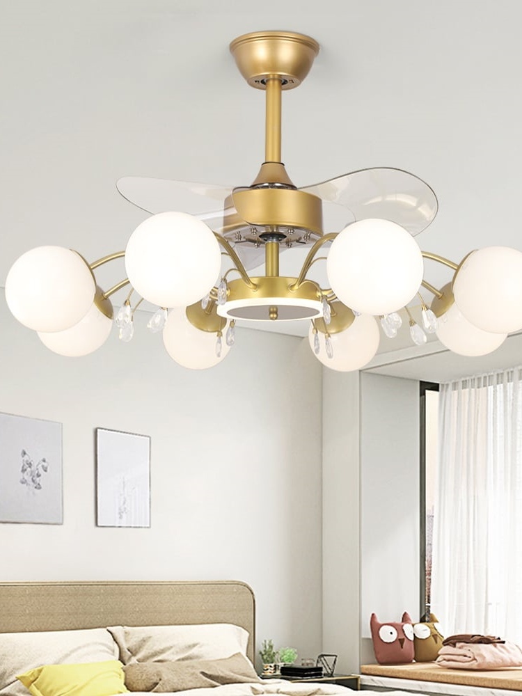 9-Light Gold Chandelier Bladeless Ceiling Fans With Light In Glass Shade Remote Control
