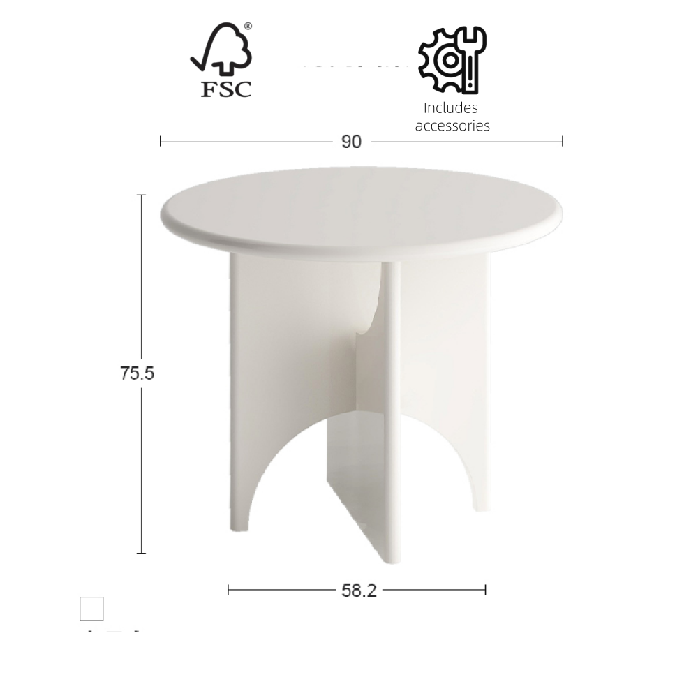90Cm Moon Round Table Dining Table Modern Simple Light Luxury Solid Wood Table Round Cream Style Small Apartment