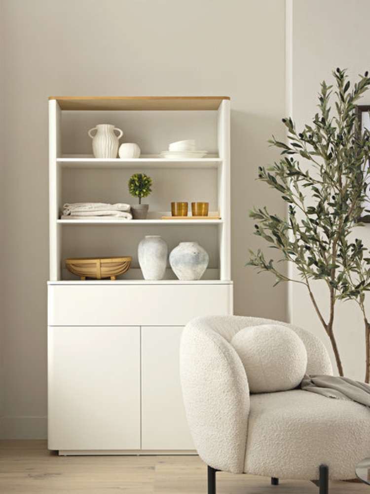 • Our compact Agnes dresser offers easy-to-access storage with 3 shelves on top of a sliding drawer and further storage cabinet.