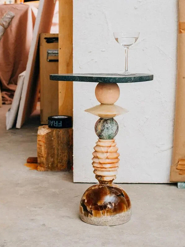 • Elevate your space with a side table that doubles as a handcrafted work of art—featuring meticulously stacked natural stones (marble, onyx, and gemstones) that blend organic allure with sculptural drama.