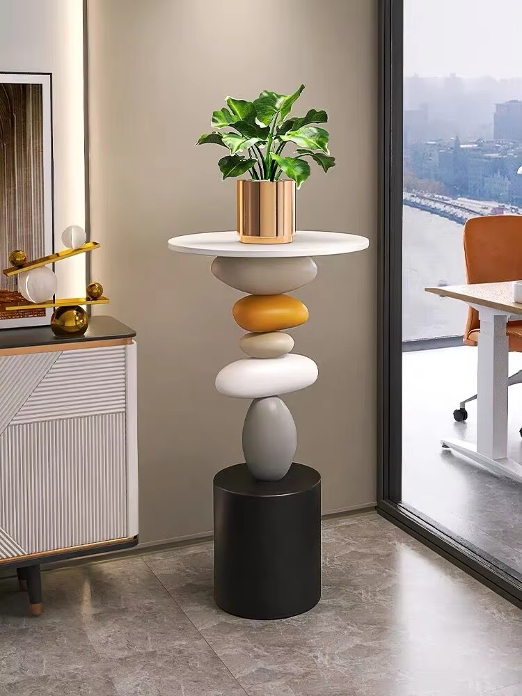 • Redefine your living space with this resin side table, a masterpiece where natural inspiration merges with modern functionality. Designed to mimic the serene balance of stacked river pebbles, its organic form and harmonious color palette transform ordinary furniture into a captivating focal point—ideal for enhancing sofas, bedrooms, or empty corners.