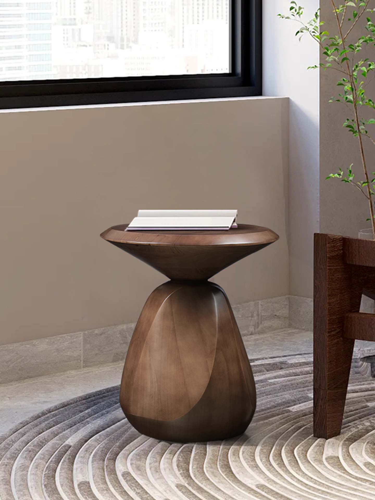 • Elevate your living space with this exquisitely crafted wooden side table, where sculptural artistry merges with the timeless warmth of solid wood. Designed to be both a functional surface and a statement piece, it brings a touch of modern organic elegance to contemporary, minimalist, or nature-inspired interiors—ideal as a side table, accent piece, or petite display platform.