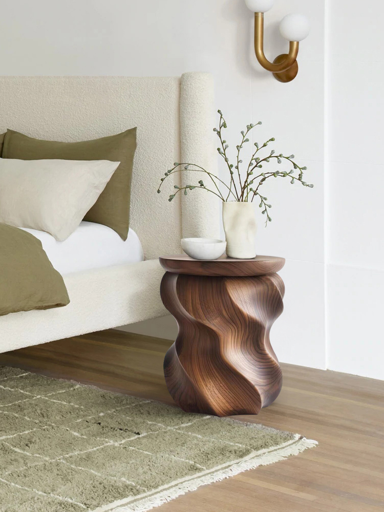 • Elevate your living space with this exquisitely crafted wooden side table, where sculptural fluidity merges with the timeless warmth of natural wood. More than just a functional piece, it acts as a statement art object—infusing rooms with organic elegance and modern artistry, perfect for contemporary, minimalist, or nature-inspired interiors.