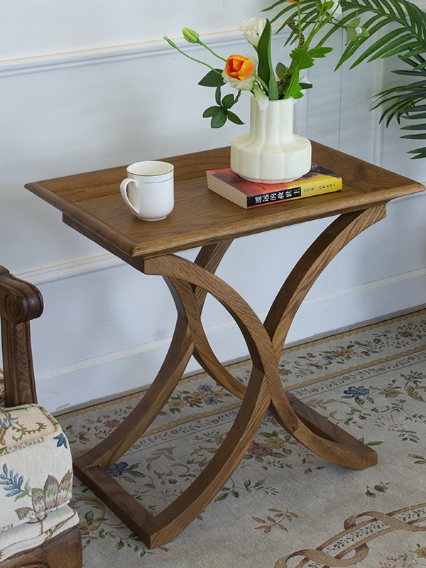 • Artful Cross-Brace Frame: The table features gracefully curved, intersecting wooden braces that form a sturdy yet visually striking base. This design not only ensures exceptional stability but also adds a touch of artistic fluidity, echoing vintage furniture aesthetics.