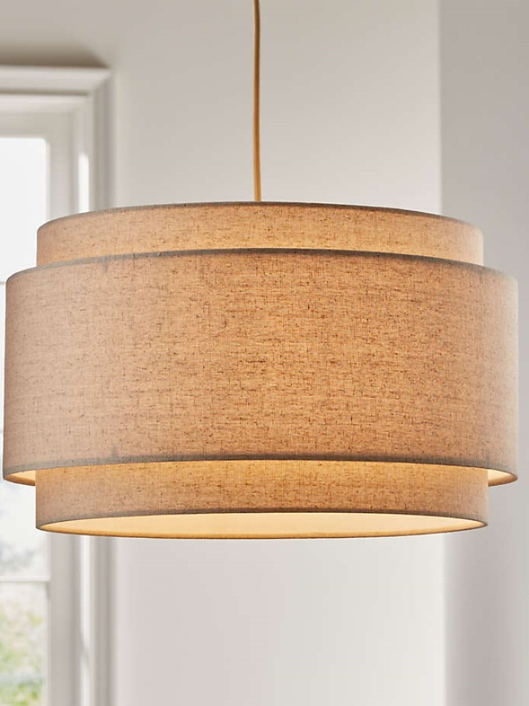 Avery Natural Linen Double Drum Pendant Light