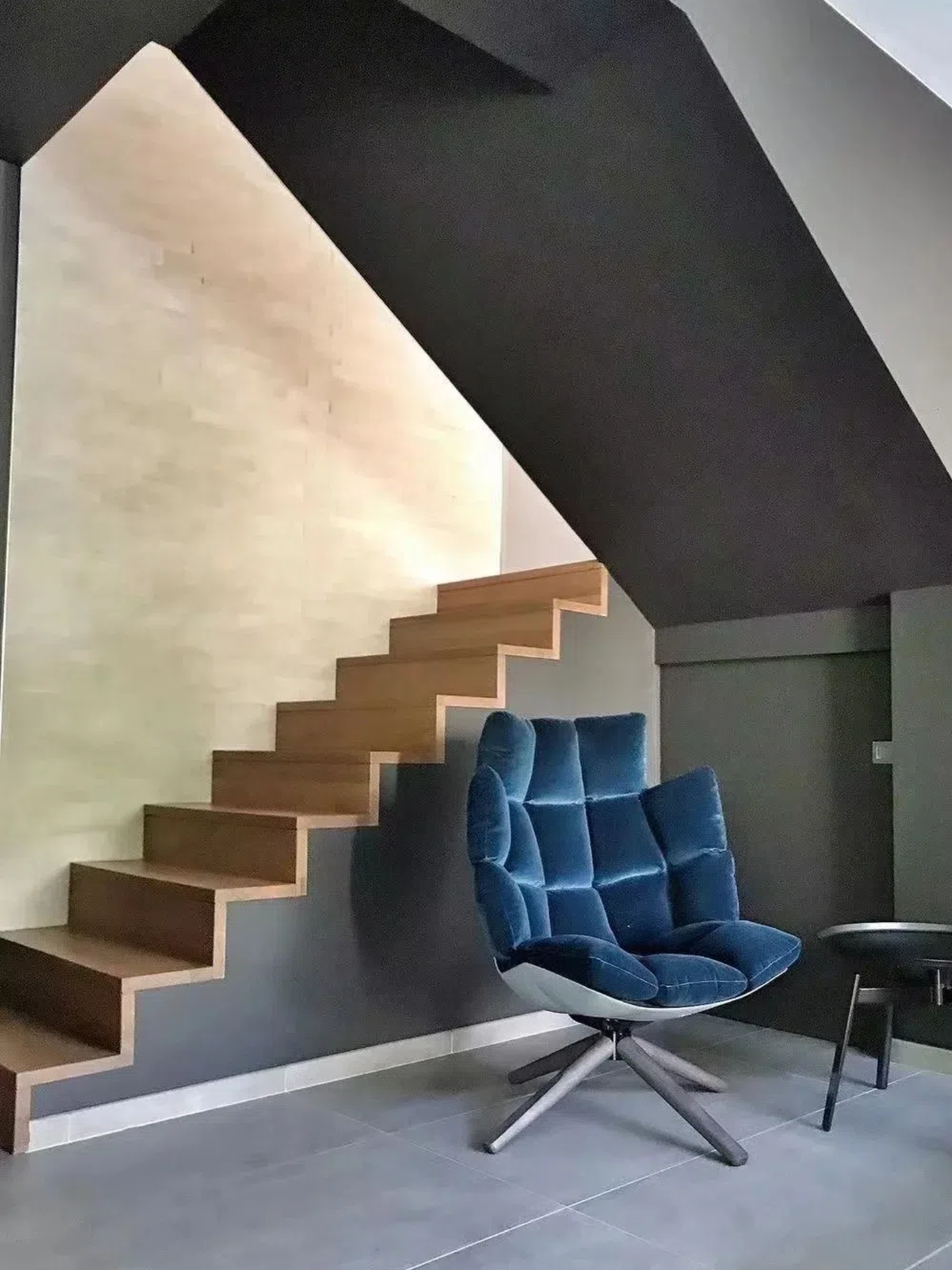 steel profiles, black painted hard polyurethane, grey oak or brushed light oak solid wood