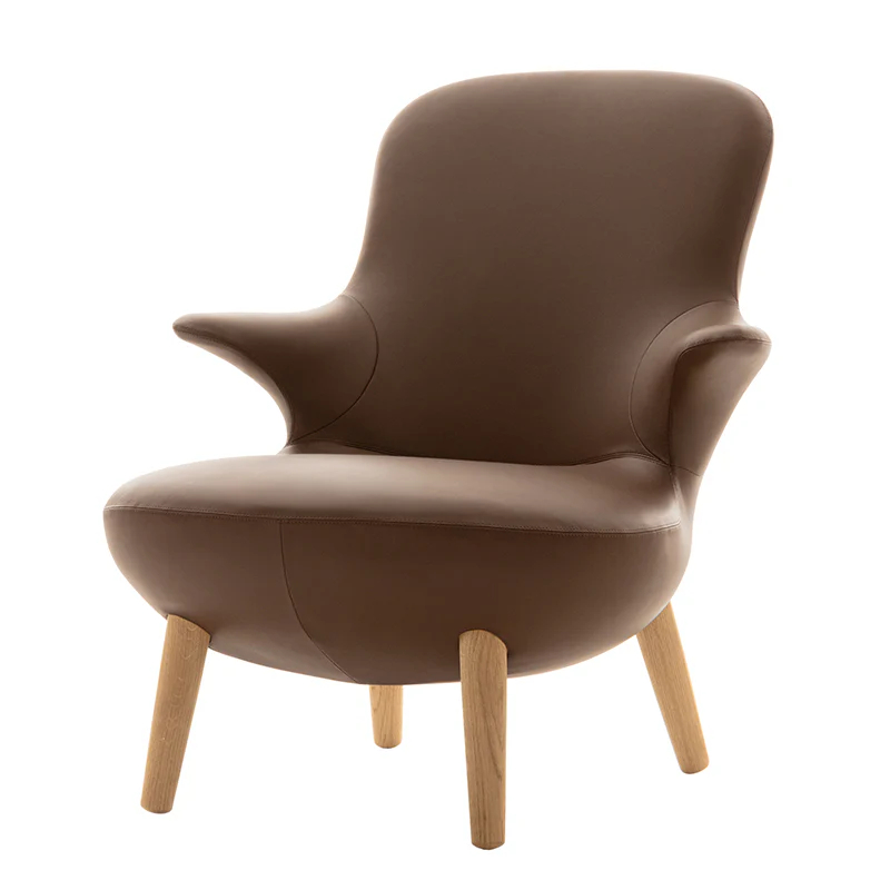 Omoi is an armchair that stands out for its sinuous, enveloping shapes, which seem to flow like a pencil that keeps drawing in the space, transforming it almost into a moulded being.‎ Inspired by the iconic Scandinavian design of the early 1950s and enriched by Naoto Fukasawa’s unique style, Omoi is characterised by sober, sculptural lines, alternating soft curves with bolder lines.‎ The name Omoi reflects the profound thought and relevance of this creation.‎ It is in fact designed for deep and important conversations rather than pure relaxation.‎ The integrated armrests, a hallmark of the designer, give the armchair a singular elegance and character.‎ Upholstered in fabric or leather, with decorative stitching, it features extremely accurate finishes and details.‎ The oak legs in various finishes - clear brushed, black brushed, grey - lend a touch of naturalness and warmth to the overall design.‎