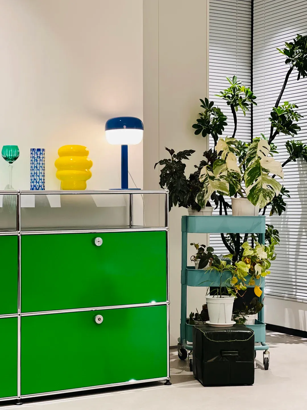 USM Haller storage cabinets are renowned for their modularity, consisting of a basic steel tube frame, metal panels, and connected spheres. This structure allows users to customize the size, color, and functionality of the furniture to their specific needs. Due to their simple construction and high-quality materials, USM Haller products are exceptionally sturdy and highly removable and reconfigurable, making them suitable for continuous upgrading and expansion as needs change. USM Haller is available in a variety of colors, including classic white, black, and silver, as well as more vibrant colors such as red, yellow, green, and blue. Furthermore, modules of varying sizes can be adapted to suit various space requirements.