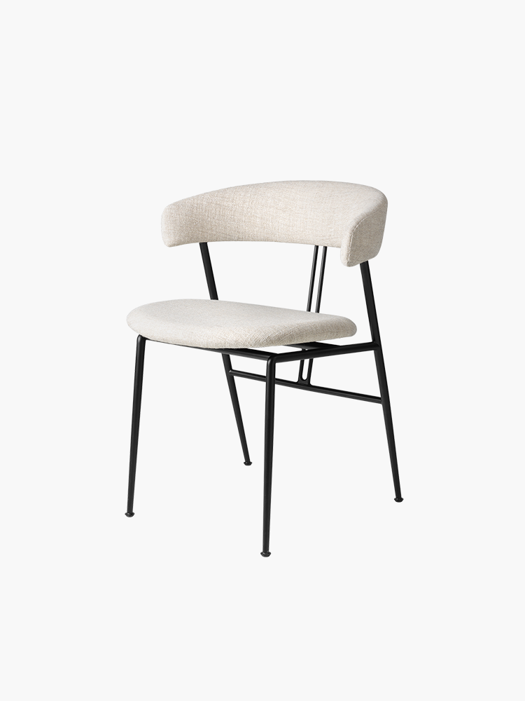 • Light, fresh and elegant, the characterful and comfortable Violin Chair from Danish-Italian duo GamFratesi resonates with bold creativity with pure craftsmanship. Like its musical namesake, the Violin Chair’s design is a harmonious duet of form and function. Two parallel lines extending from the backrest echo the strings of a violin, while also providing essential support. Elegant flourishes of detail, such as the gentle curves where the lines meet the horizontal bar, give the chair a refined but unmistakable character, where the classical counterpoints the contemporary. The gently tapering, powder-coated steel legs support a generous seat and an embracing half-arm backrest, designed such that the chair may be used both as a dining chair or an armchair, without compromising on comfort in either setting.