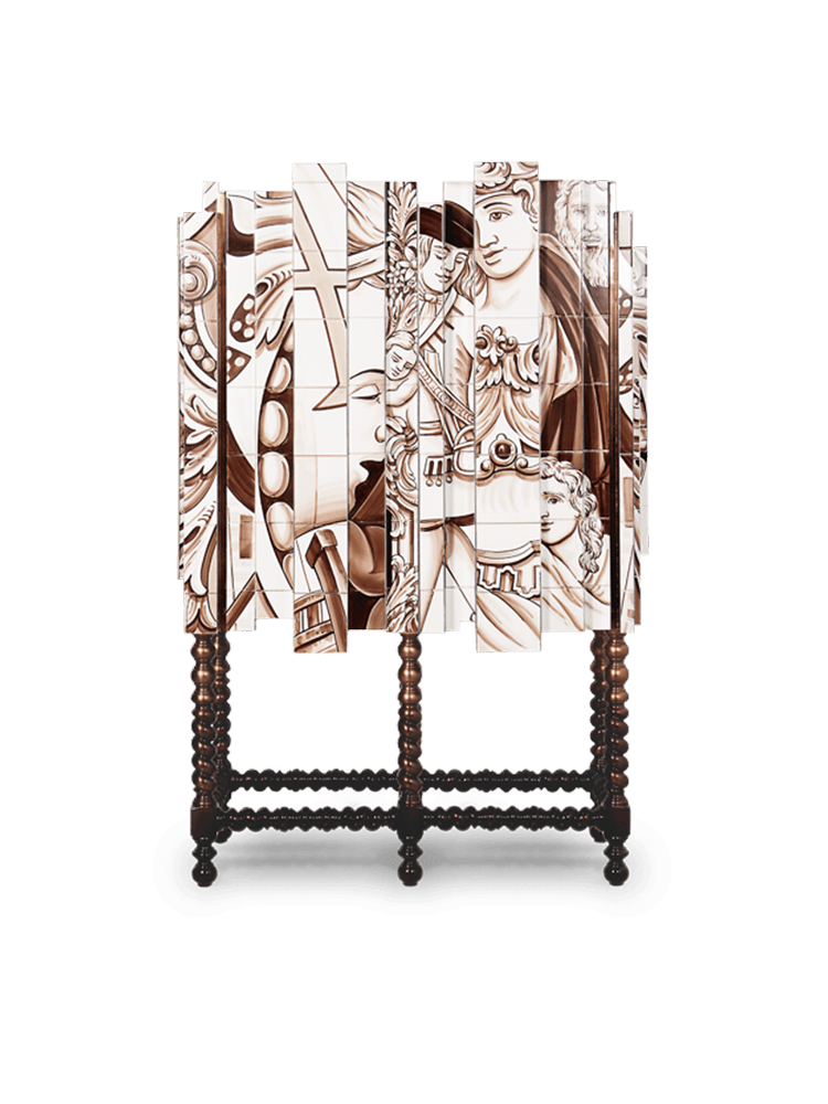 • Heavily inspired in Portuguese history and culture, the Dom Heritage is a cross between two of Boca do Lobo’s most iconic design pieces, keeping the form of the Dom Manuel cabinet, with the use of the azulejo finish found on the Heritage pieces. Used to tell tales and stories, azulejo tiles became increasingly popular during King Manuel’s reign, representing a landmark in Portuguese architecture. The Dom Heritage is a tribute to the country’s grand epoch, as well as to it’s traditional artisan crafts which Boca do Lobo seek to keep alive.
