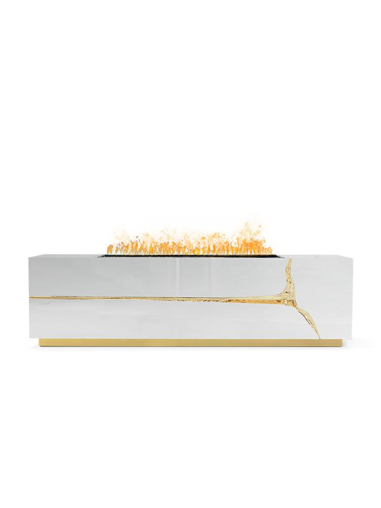 • The Lapiaz Fireplace Cabinet takes exceptional craftsmanship and design to a new realm. Finding beauty in the most unexpected places, this contemporary design piece is inspired by authentic karst formations. A beautiful concept that embodies the perfect fusion of functionality and artistic elegance. Its single-module design has an integrated fireplace, infusing warmth and ambiance into any room. Its sleek frame showcases plain smoked glass shelves, providing a sophisticated platform to display your cherished collectibles and objets d’art.
