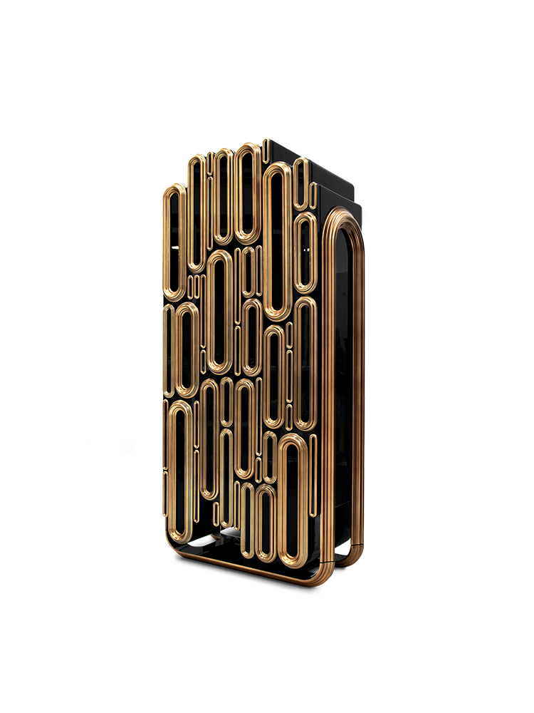 • The Oblong Gold Cabinet is a fusion of modern and classic elements into a highly detailed and exquisite limited edition furniture piece. The modern cabinet was specifically designed to act as a statement piece in contemporary living areas and raise the bar on luxury decoration. Handcrafted by Boca do Lobo’s finest craftsmen, the luxury cabinet was born from the use of production methods developed to deliver the highest quality.