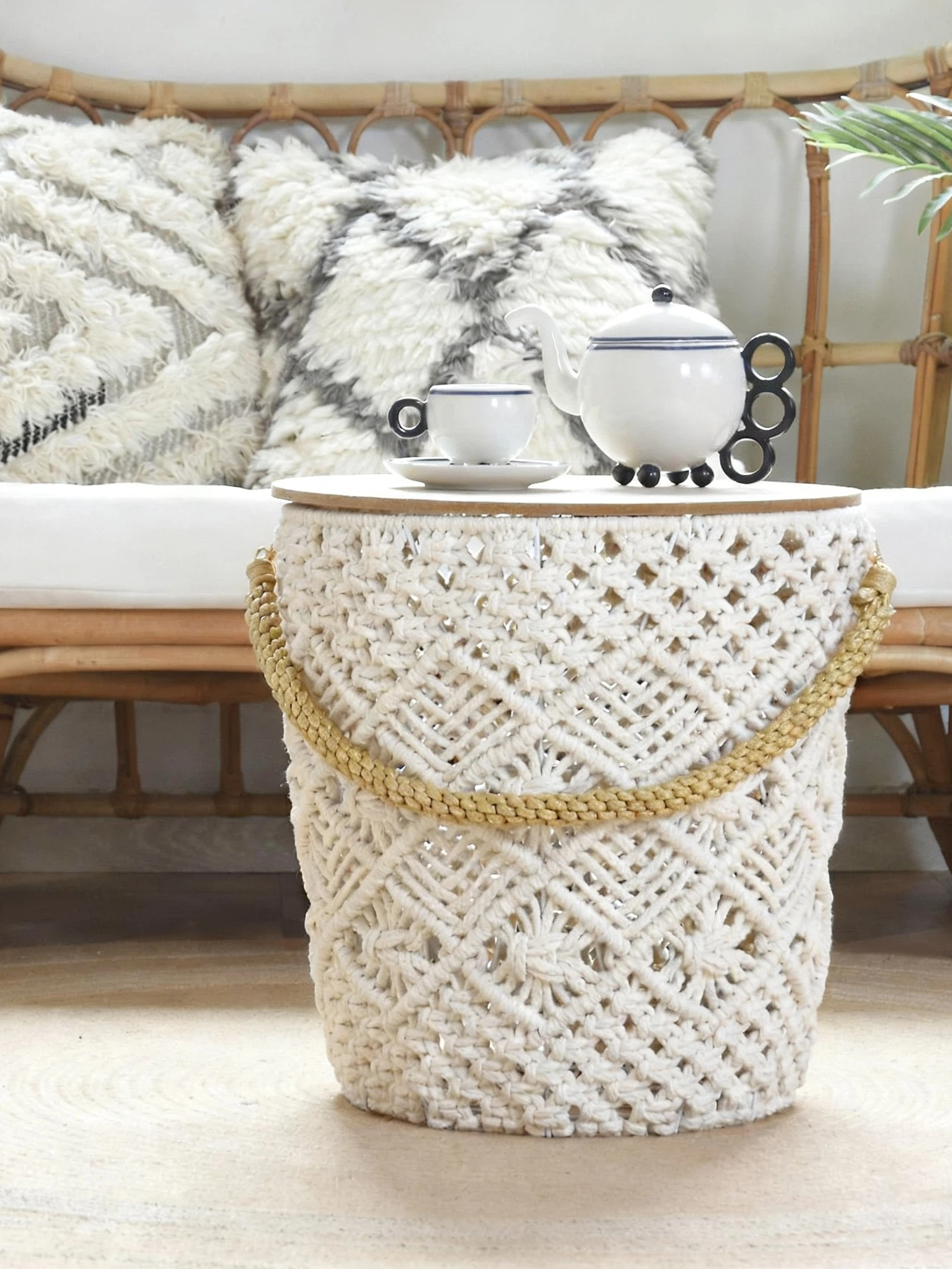 Boho Macrame Side Table With Storage: Handcrafted Elegance For Cozy Spaces