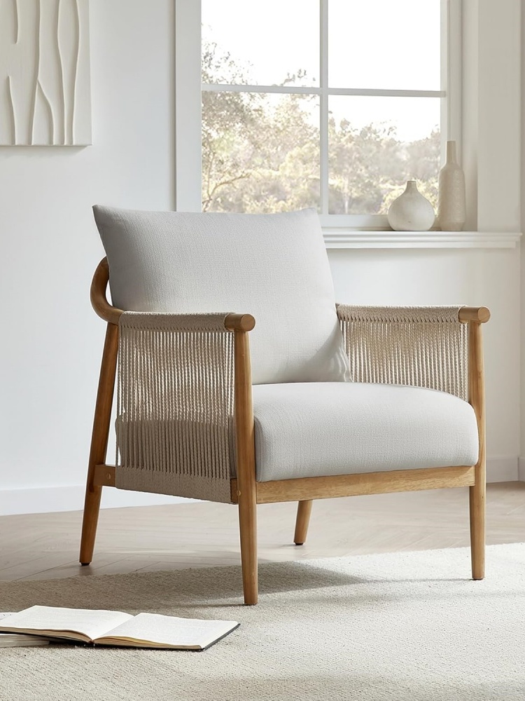 Braid Armchair, Modern Accent Chair For Living Room, Cream