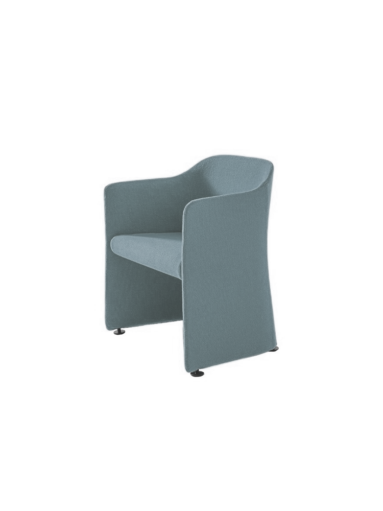 • So versatile that it can adapt perfectly to both domestic and contract settings, thanks to its essential look, San Siro armchair is available in two versions: with feet or castors. The upholstery on this design is fixed, from a selection of fabrics and leathers in the collection.