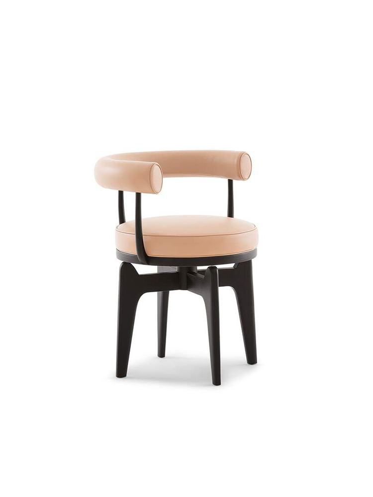 • The Cassina Indochine Chair, a swivel armchair redesigned from Charlotte Perriand’s LC7 chair, is ideally suited for offices and restaurants due to its blend of timeless elegance and practicality.