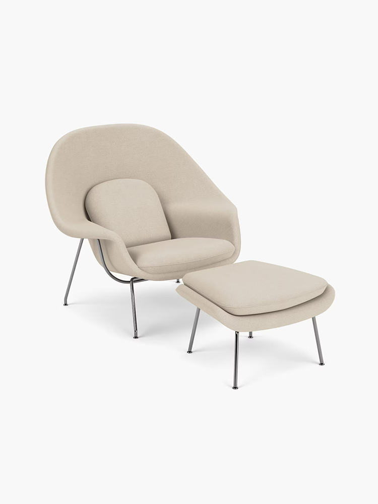 • Eero Saarinen designed the groundbreaking Womb Chair at Florence Knoll's request for "a chair that was like a basket full of pillows, something I could really curl up in."
