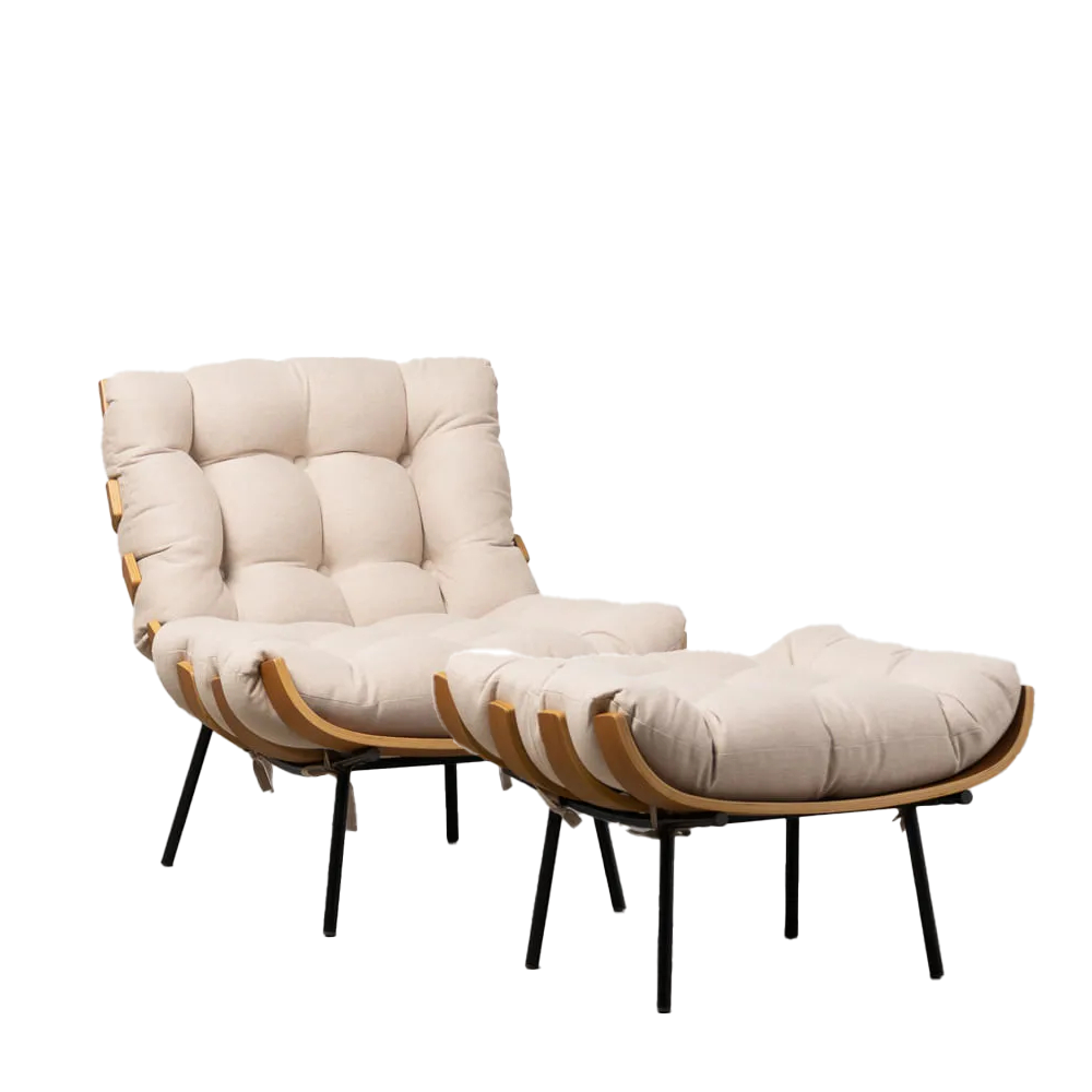 • The Costela chair is a dreamy piece of furniture that can transform any environment! As an icon of design, it combines quality, comfort, and style. Its sturdy structure is made of carbon steel and layered eucalyptus wood, along with Curupixá wood layers, ensuring durability and longevity, while its classic appearance adds charm and personality to the decor. Perfect for moments of relaxation, the Costela chair is equipped with super comfortable cushions, filled with silicone fiber (2.5 kg per cushion), that can embrace and provide warmth, whether for relaxing, reading, or simply enjoying a moment of tranquility. This piece was created in the 1950s by Austrian designer Martin Eisler and has become a true classic in global furniture, a must-have in the projects of top architects and interior designers.