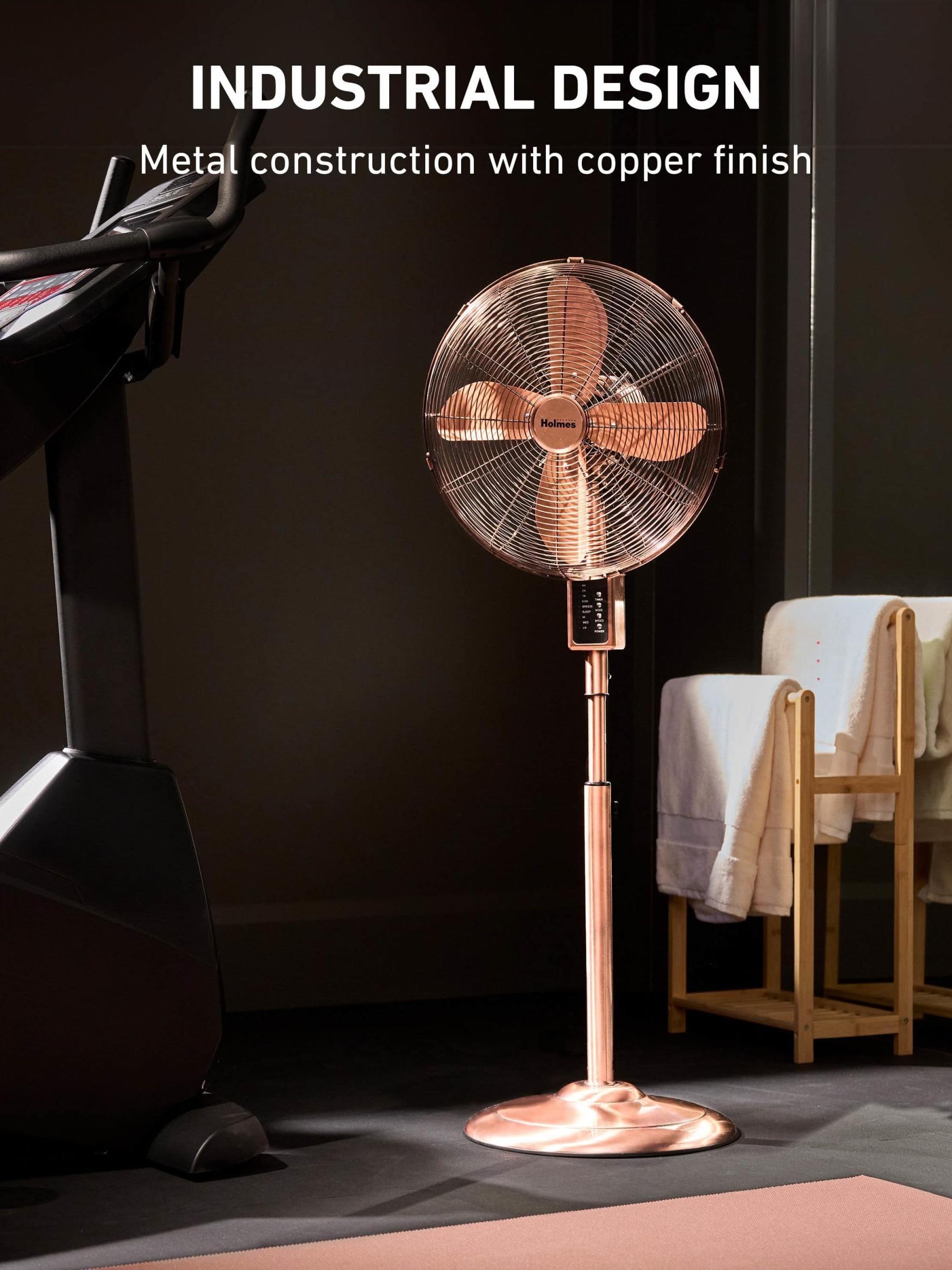 • Fully Adjustable: Height can be adjusted from 44" to 49" and head tilts 20° to direct airflow where you need it the most