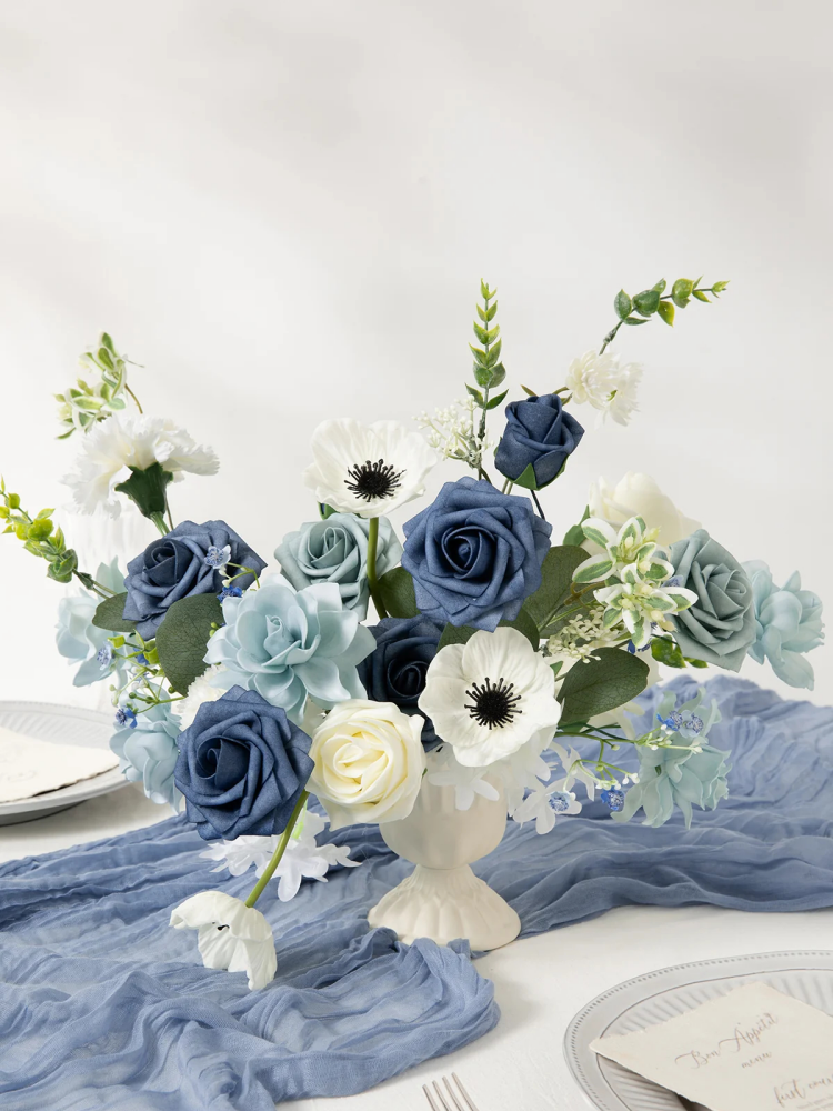 Diy Designer Flower Boxes In Dusty Blue & Navy Artificial Flowers Without Vase