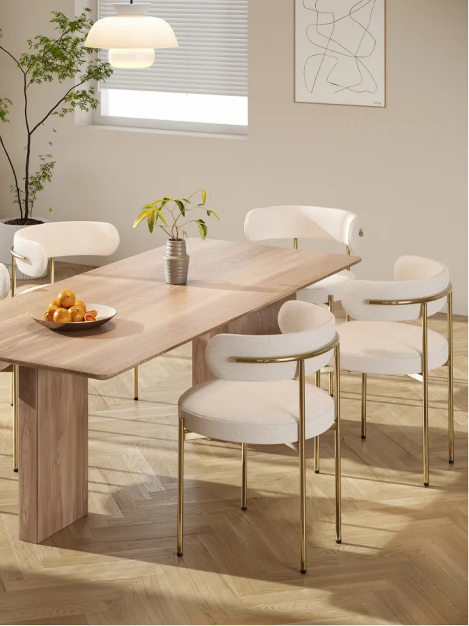 Modern upholstered iron chairs, Metal legs Curved back dining chair