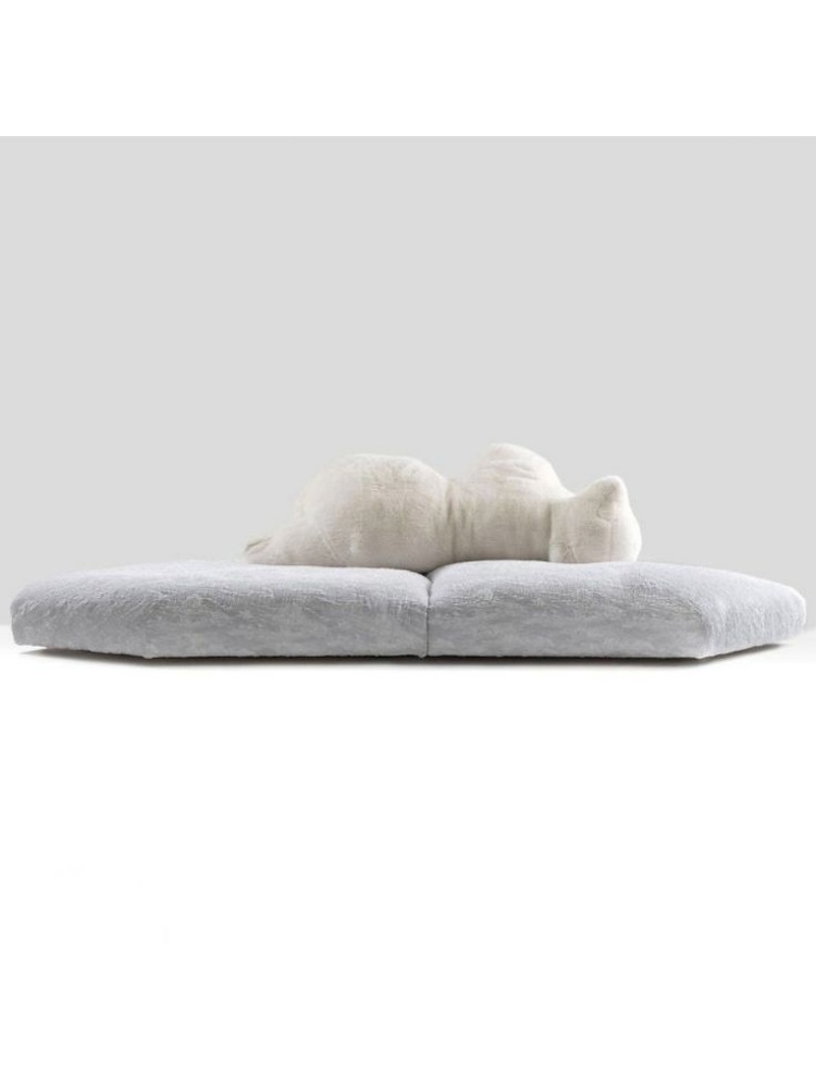• Pack is a sofa designed by Edra. I'ts an icepack as base and looks like an exciting domestic landscape.The seat evokes an icepack covered with a fabric specifically created with texture similar to its various layers. The back is a big bear lying on his side, covered by ecological fur and ballasted inside, with non-slip leather bottom.Seat made up of two separable parts for transport, made of plywood and padding in Gellyfoam® and feather.Removable cover.