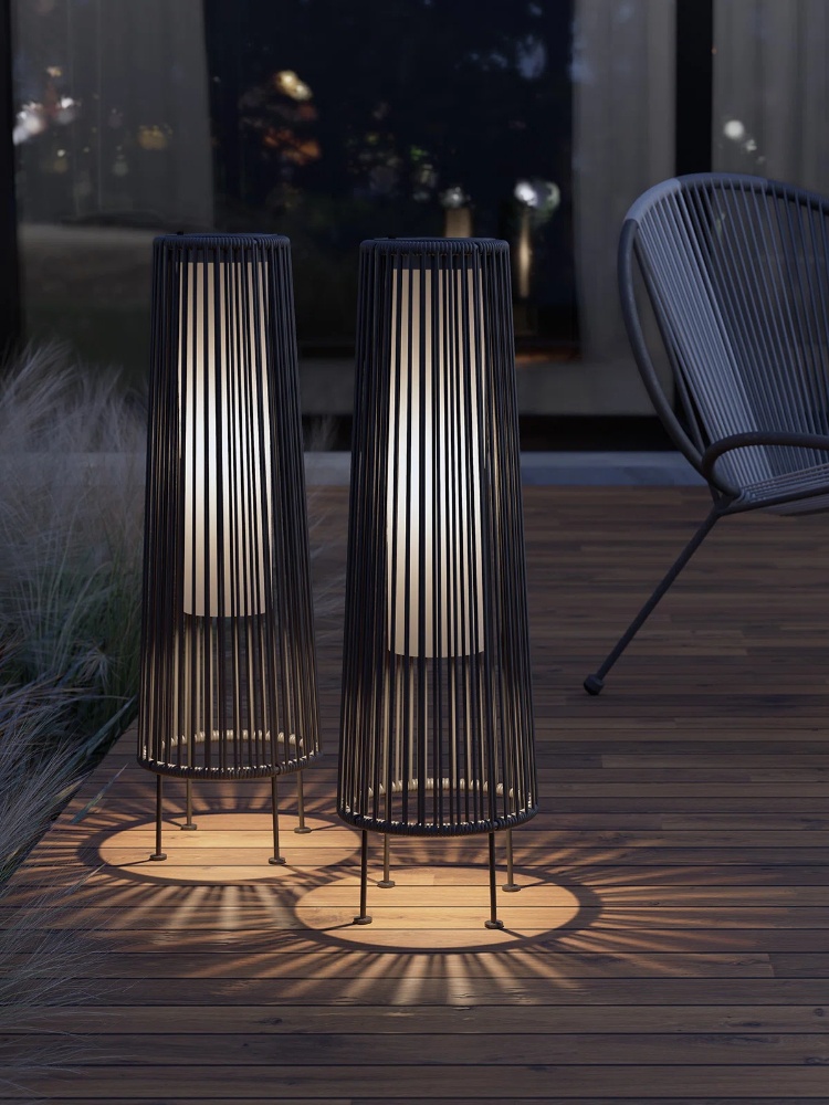 • Size And Design: 26.75'' H X 8.75'' W X 8.75'' D, Our floor lamp features a beautiful open-weave pattern of willow branches. Equipped with bright LED beads, it provides a large lighting area and high brightness, making the garden or courtyard look brighter and more beautiful at night.