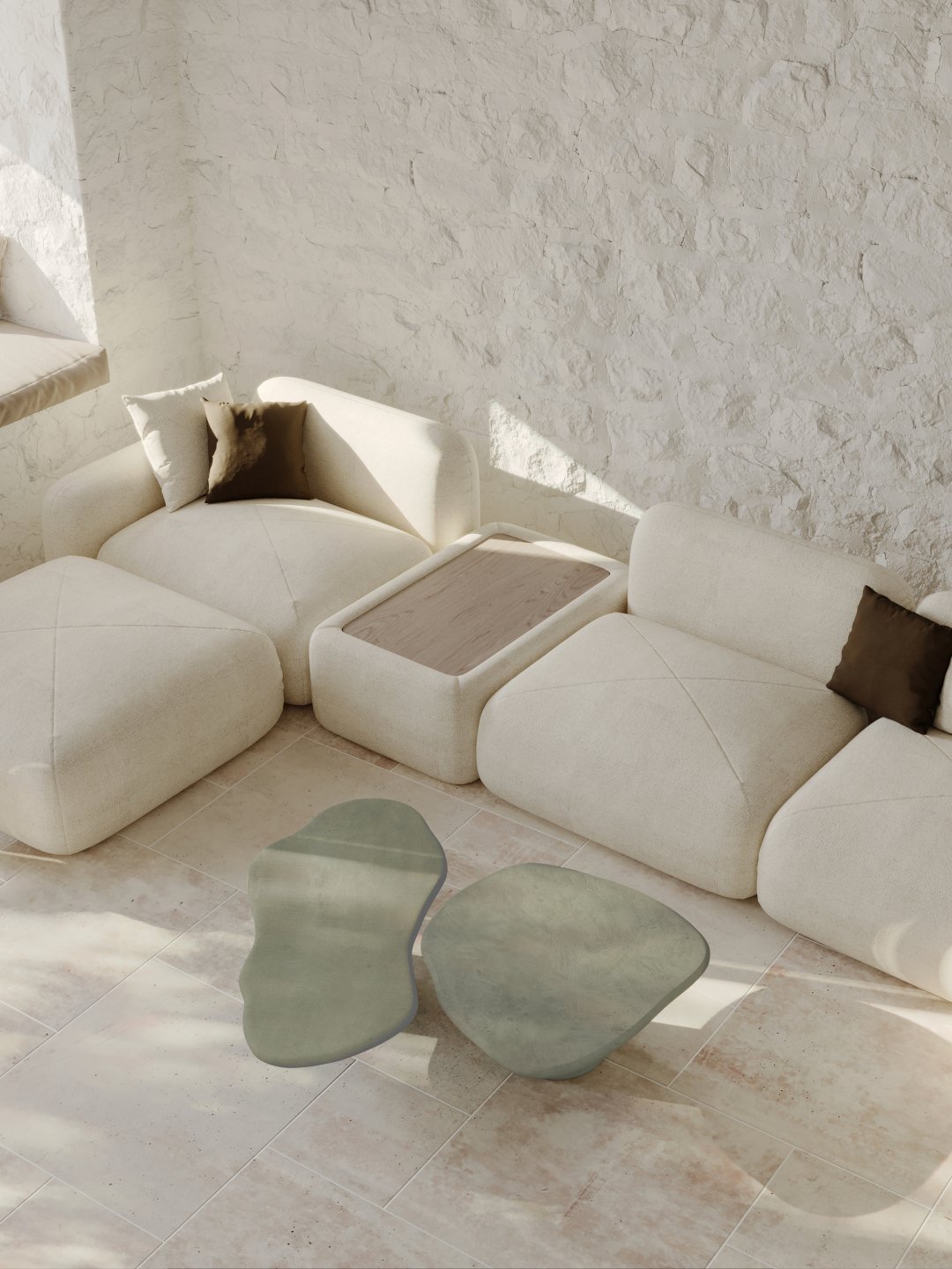 Embracing nature’s asymmetrical beauty, the collections irregular shapes mirror the organic spontaneity found in natural landscapes.