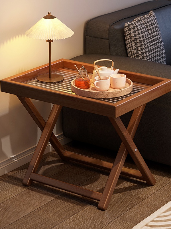 Foldable Wood Side Table With Removable Tray