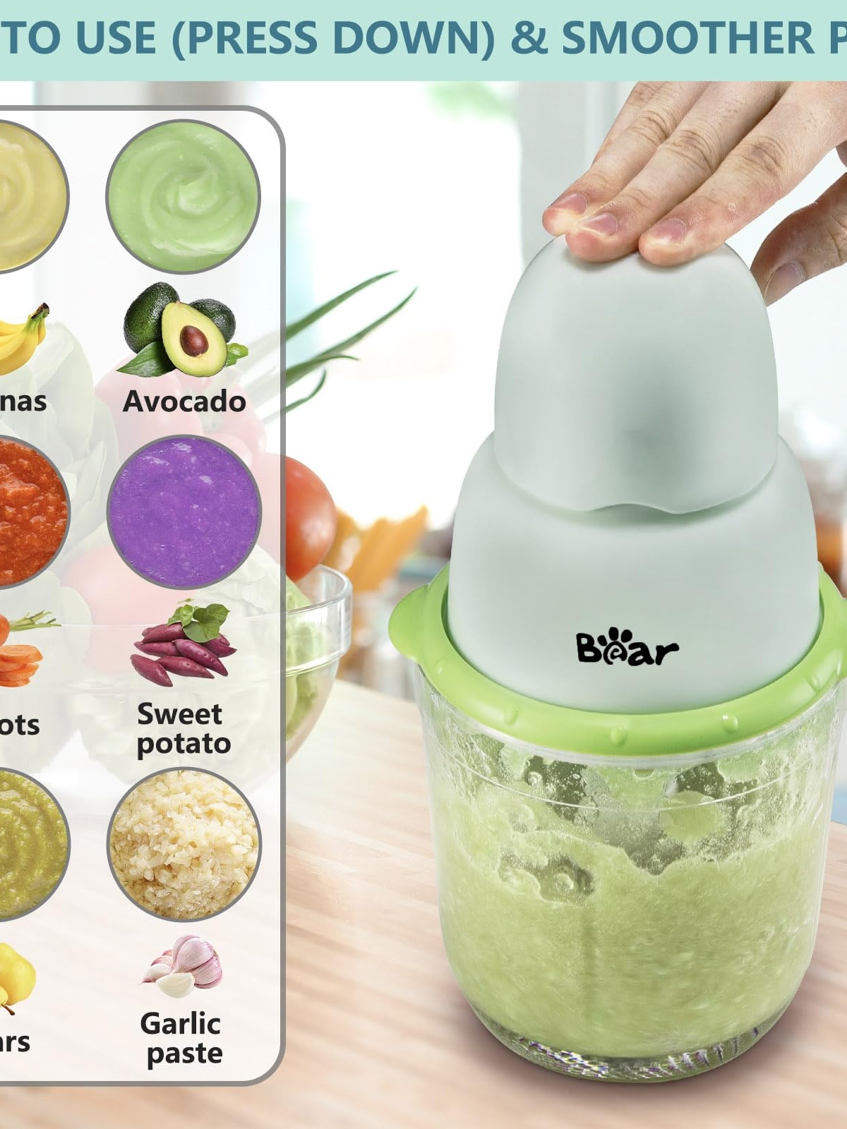 • Quick and Effortless Operation: Features three sharp blades and a high-power motor for fast and efficient blending. Press to start, release to stop—create baby food with the perfect consistency in seconds. Operates quietly, so you can prepare meals without disturbing naptime