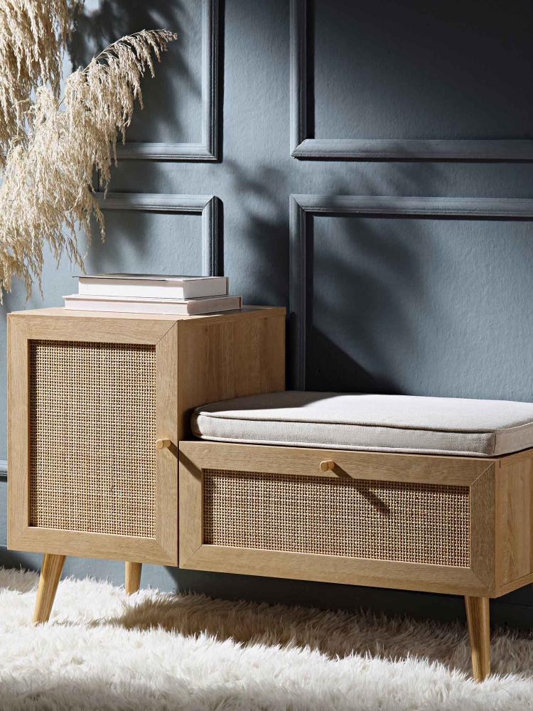Frances Woven Rattan Storage Bench With Cushion, Natural