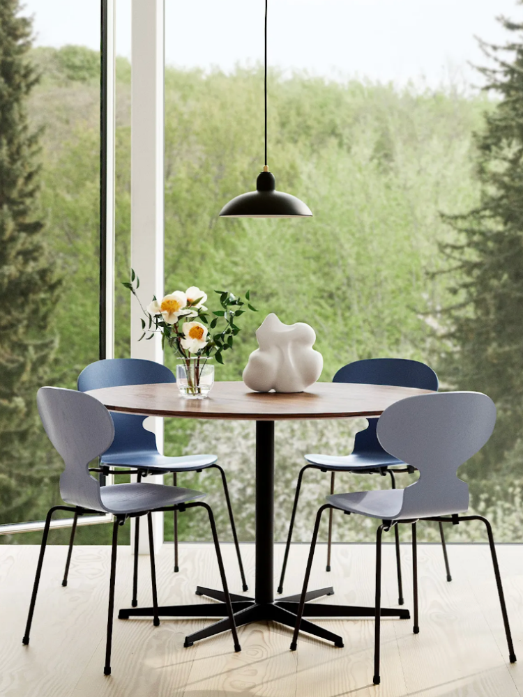 • The 3100 stackable chair which, thanks to its aesthetic appearance reproducing the insect's body shape, became known as Ant, has been designed in 1952 to meet a specific need: a stackable and light chair for the canteen of a pharmaceutical company.