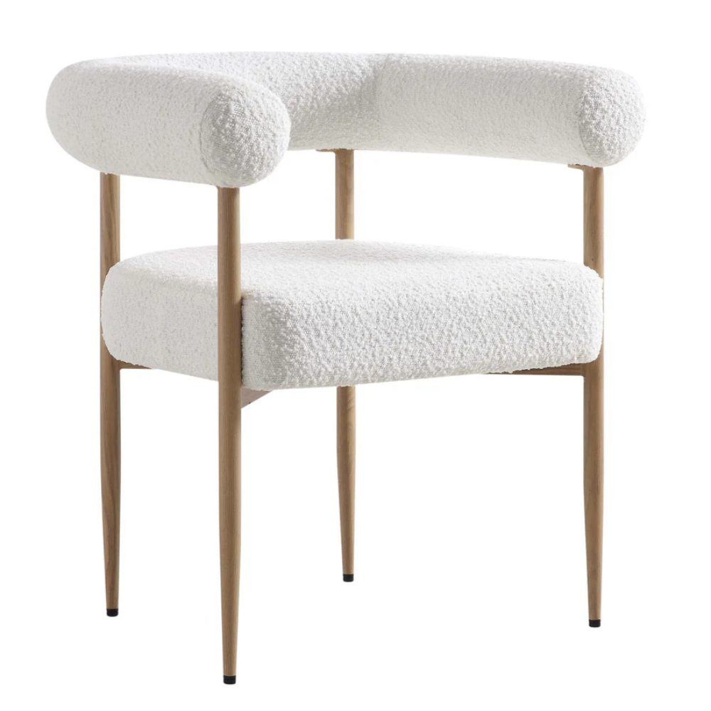 Fulbourn White Boucle Dining Chair With Natural Wood Effect Legs