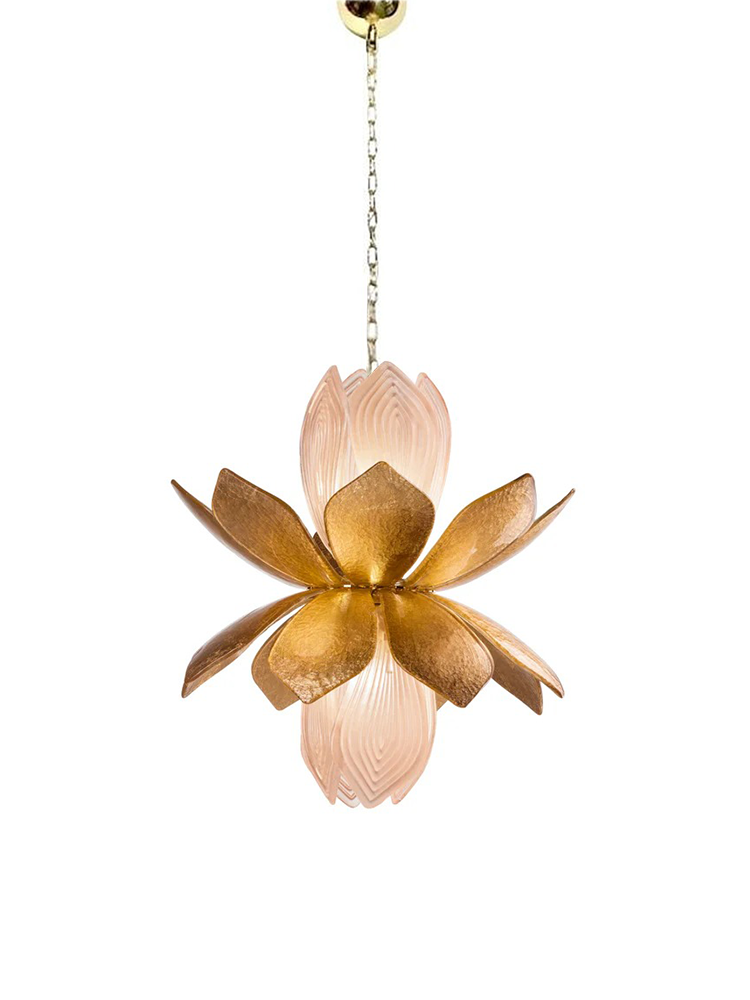 • "Lotus" lantern in brass and Murano glass with gold leaf.