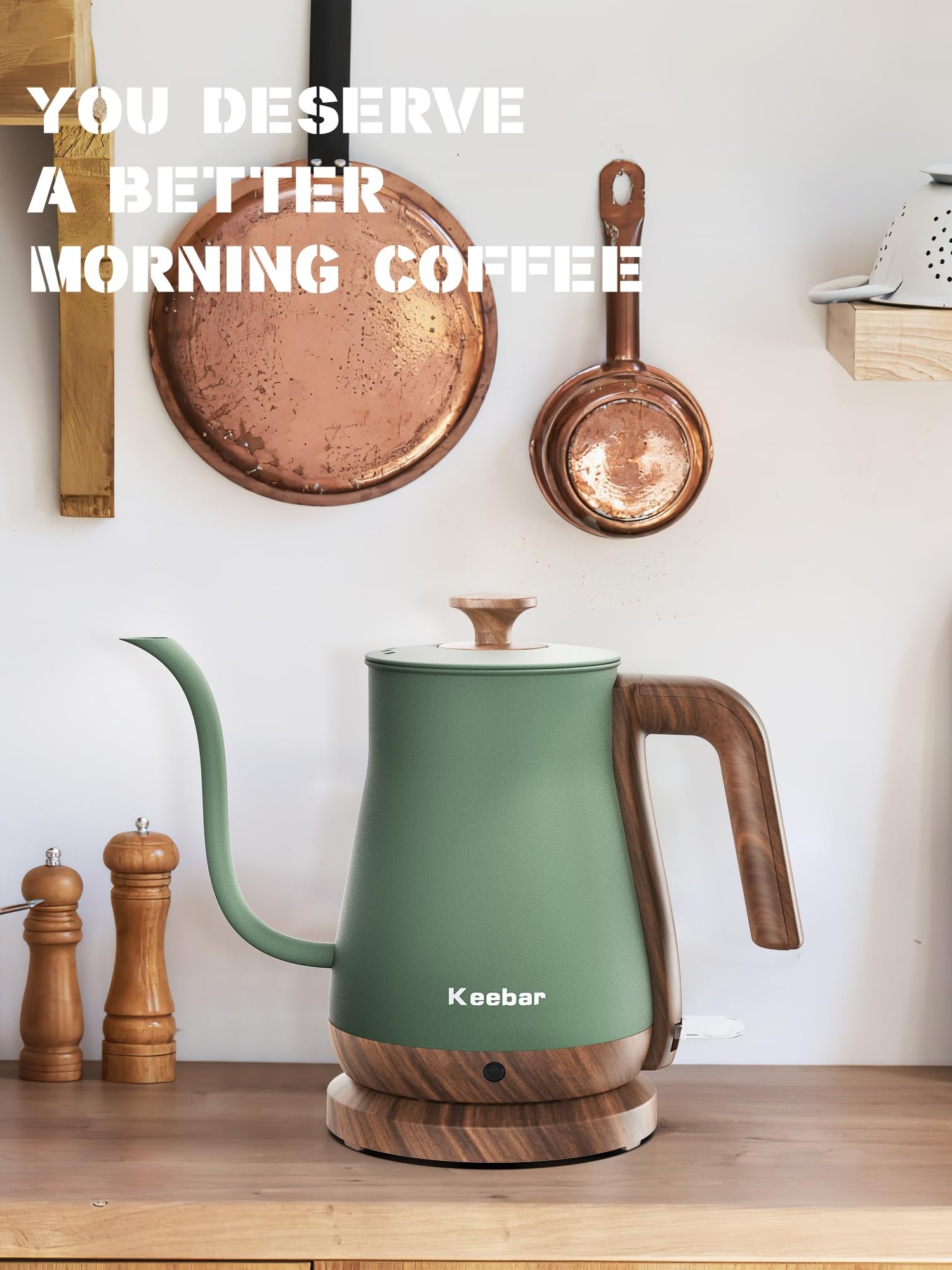 Gooseneck Electric Kettle, Electric Tea Kettle Stainless Steel, Pour Over Kettle For Coffee, 1000W Hot Water Kettle Electric Auto Shut Off, 0.8L, Wood-Like Grain Finish Handle, Matcha Green
