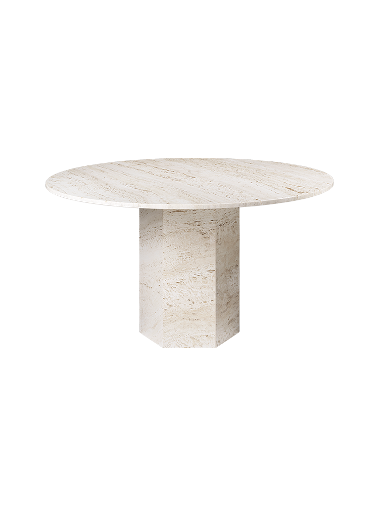 • Named after the epic poems of ancient times, GamFratesi’s Epic Table for GUBI is a sculp- tural piece of furniture inspired by Greek columns and Roman architecture. Originally made in Italy from travertine stone, the table’s new variant marks the first time GamFratesi has worked with steel plates, which are galvanized, lacquered, and then treated with a series of hand-fin- ishing processes to create a unique surface expression for each table. The table’s monolithic form remains, now with an industrial expression, in which a new detail can be discovered with every use.