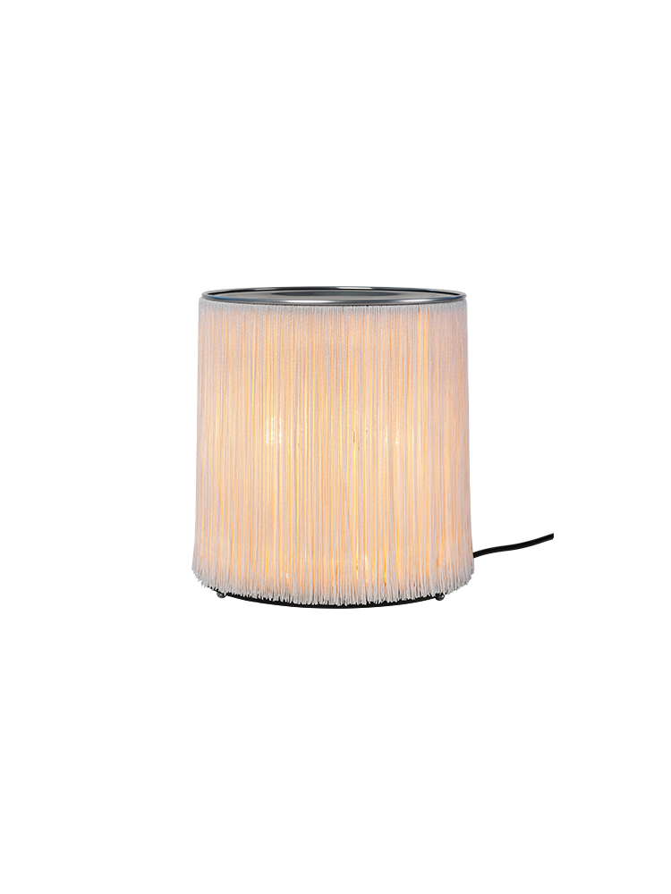 • First released in 1961, the Model 597 by Italian virtuoso Gianfranco Frattini is the lamp that launched him as a lighting designer. Its unique and playful form perfectly encapsulates Frattini’s extraordinary approach to the aesthetics of light. Model 597’s unique nylon fringes were inspired by both the world of fashion and the fringed entrance curtains commonly found in Italy’s bars and grocery stores in the late 1950s. Thanks to the array of lateral bulbs, the Table Lamps emit a 360o play of indirect light, softened by the fringes to create a rich ambient glow, while the reflective aluminum cover adds warmth to the uplight.Model 597 is light-hearted in expression, but serious about functionality – bringing sophistication, fun and character to interiors without resorting to superfluous decorative flourishes.