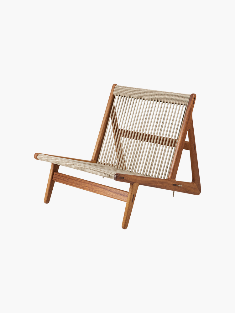 • Beautifully honest, light in both weight and expression, new Danish talent Mathias Steen Rasmussen’s debut piece is a striking interplay of craftsmanship, comfort and sustainability. Originally conceived as a lounge chair that he could also use for meditation in his home, Rasmussen’s combination of wood and rope creates a simple, flexible chair that gives a sense of both floating and connection with the ground. The open triangle frame, available in either walnut or oak, has been constructed without using a single screw, while the 90 meters of hand-woven, natural linen cord that make the seat and backrest add a lightness to the design. The MR01 Initial Chair can give comfort all year round. The rope construction allows airflow in the warmer months, and simply adding a blanket or sheepskin makes it cozy all through winter. For added comfort in many sitting positions, a bouclé wool covered pillow is included. The Initial chair can be placed alone or in pairs in the home, while it functions superbly in longer rows or clusters in hospitality settings. The simplicity of the MR01 Initial Chair’s design and materials ensure it a longevity and durability that are central to Rasmussen’s core philosophy.