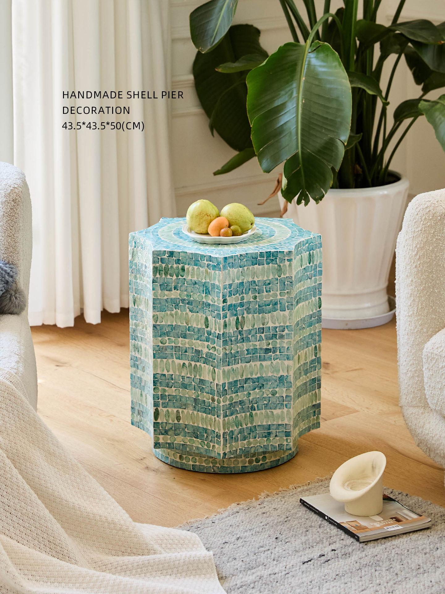 • Coastal Color Palette & Texture: The blend of turquoise and aqua tones evokes the tranquility of the ocean, while the shell mosaic adds tactile texture and subtle shimmer—infusing rooms with breezy, seaside elegance.